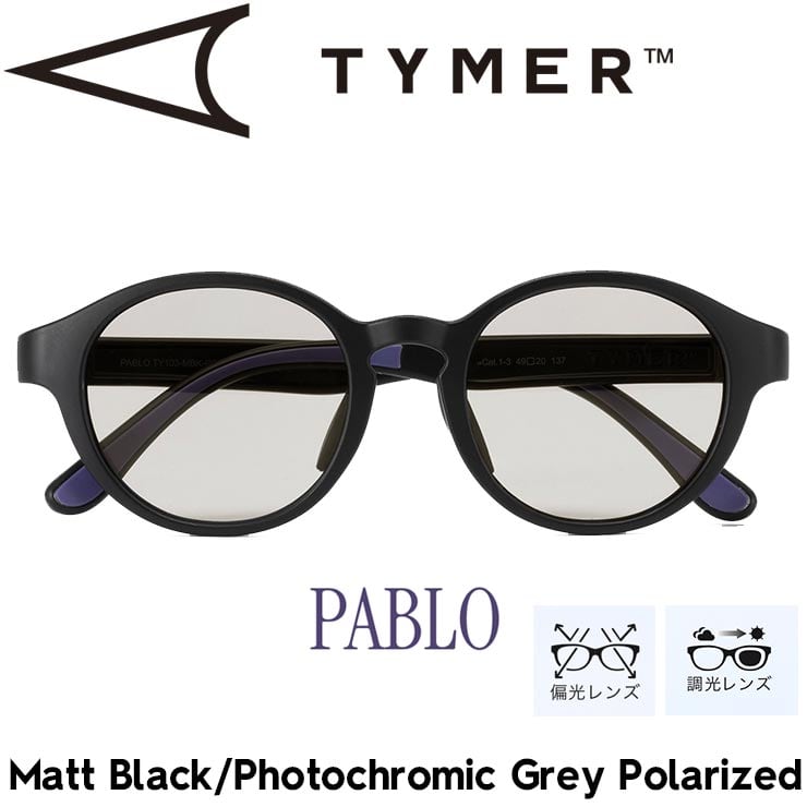 TYMER タイマー PABLO パブロ Matt Black/Photochromic Grey Polarized 調光偏光レンズ サングラス TY103-MBK-PGYP 日本代理店正規品