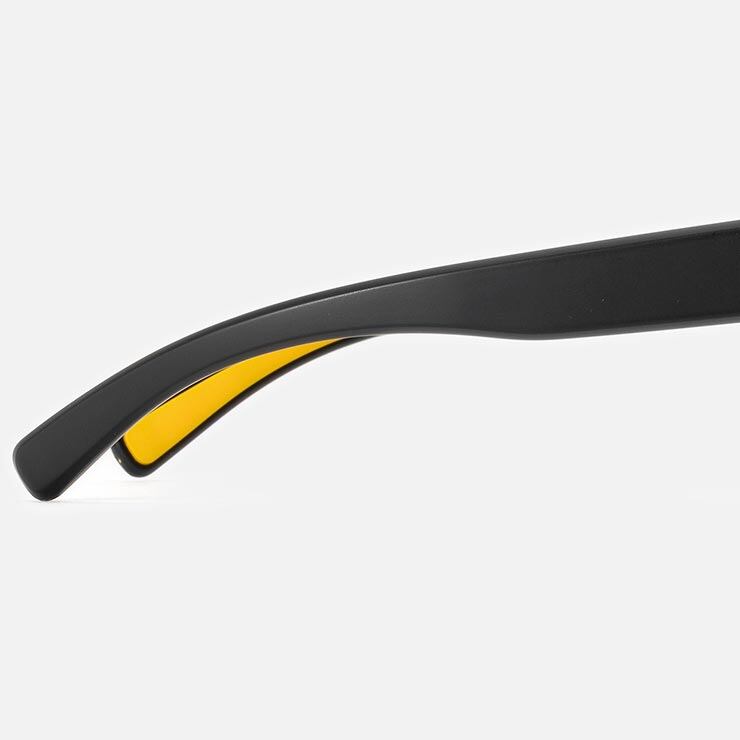 TYMER 製品のテンプルアームの耳にかける部分 ( モダン ) にはワイヤーフレームが内蔵されており、