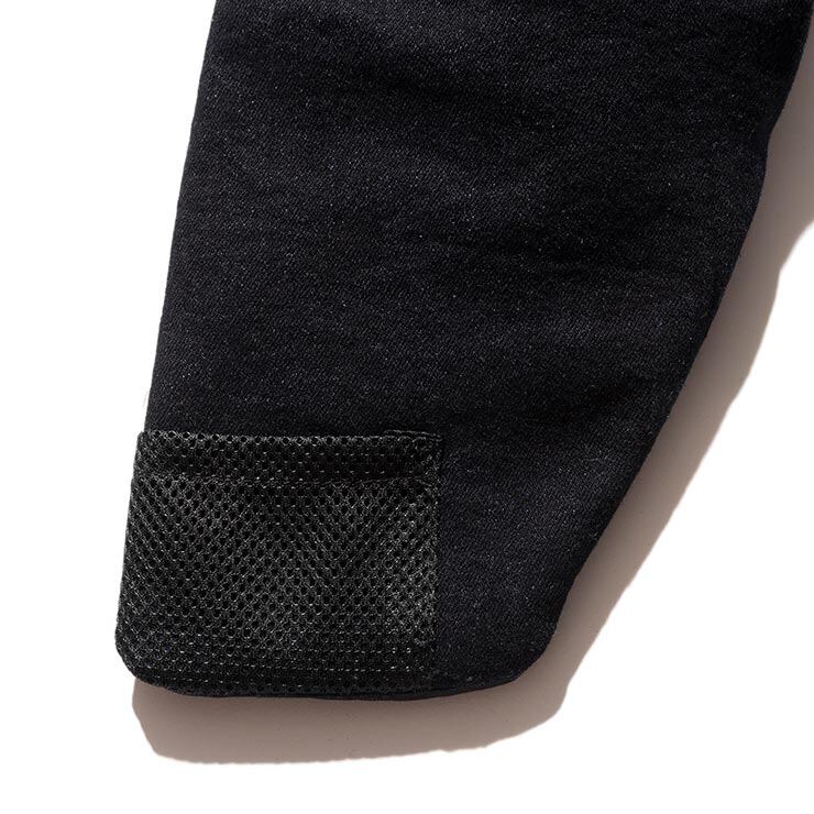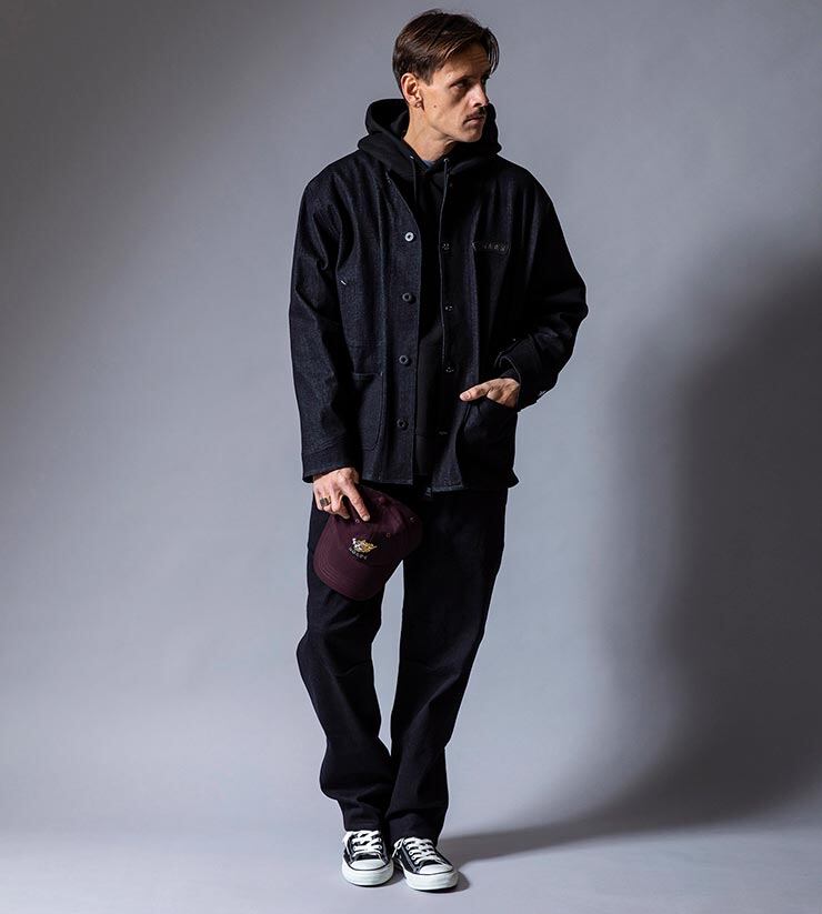 ノンウォッシュでストレッチ性のあるリジットデニム生地を採用。磁石で開閉が容易になったスマートフォン用サイドポケットや、