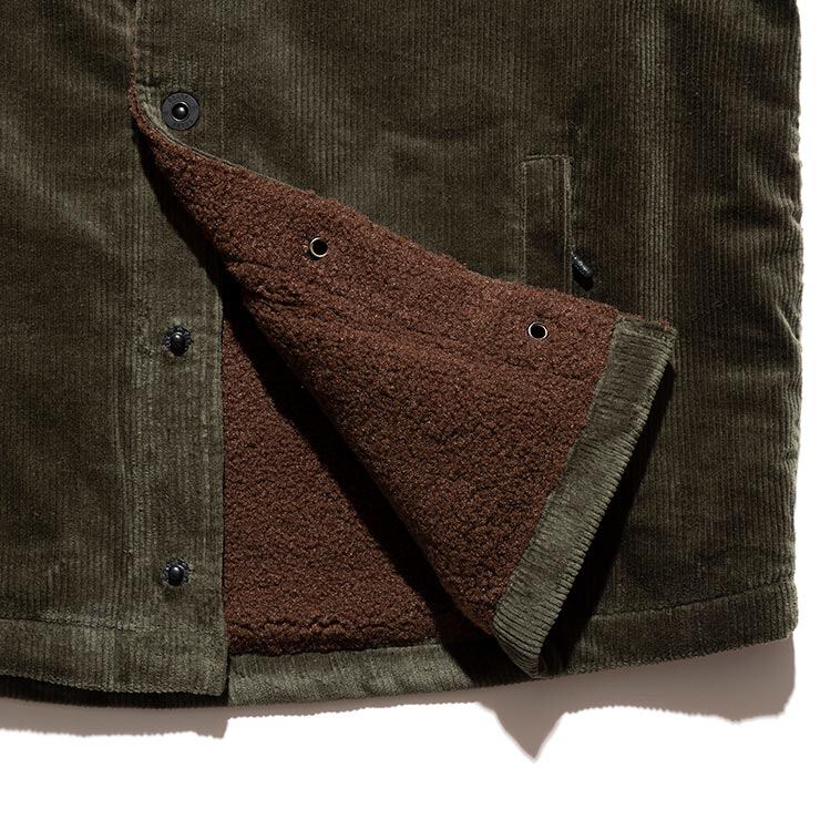 表地にはコーデュロイ生地を使用し、裏地にはボアフリースを採用。