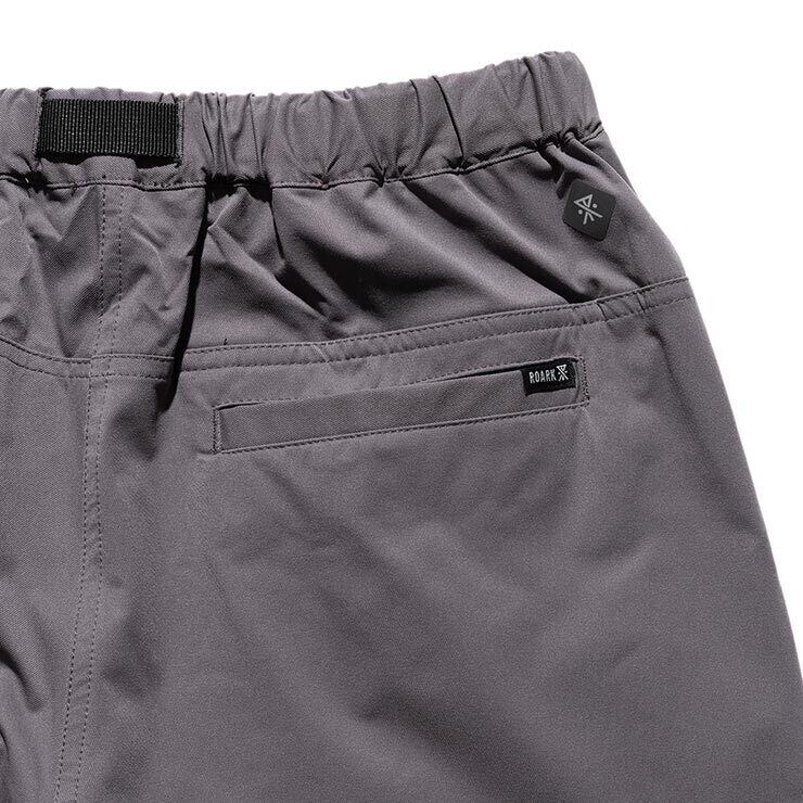 ウェービングベルトにはROARKのブランドアイコン、バックポケットにはブランドロゴがあしらわれています。<br>