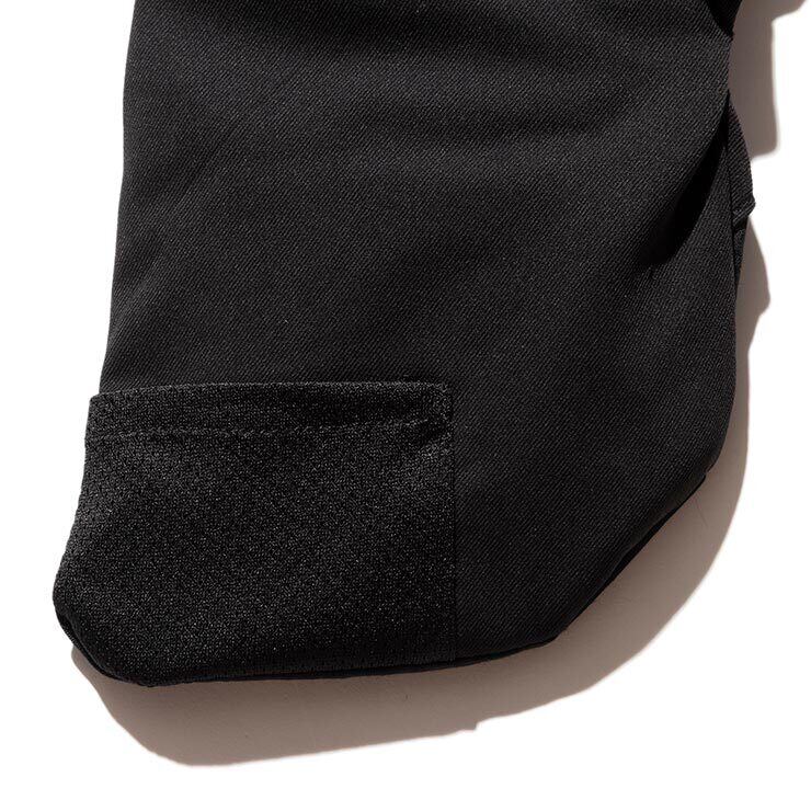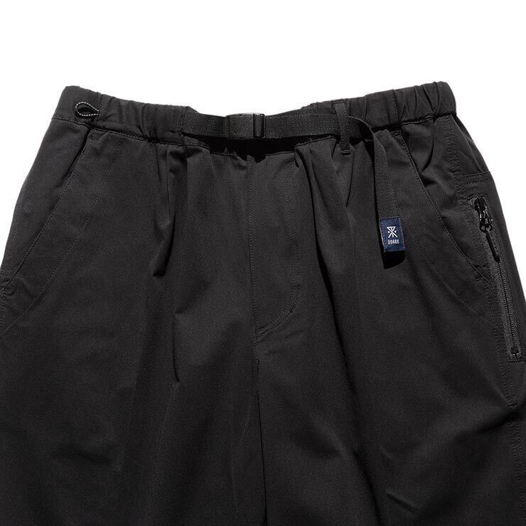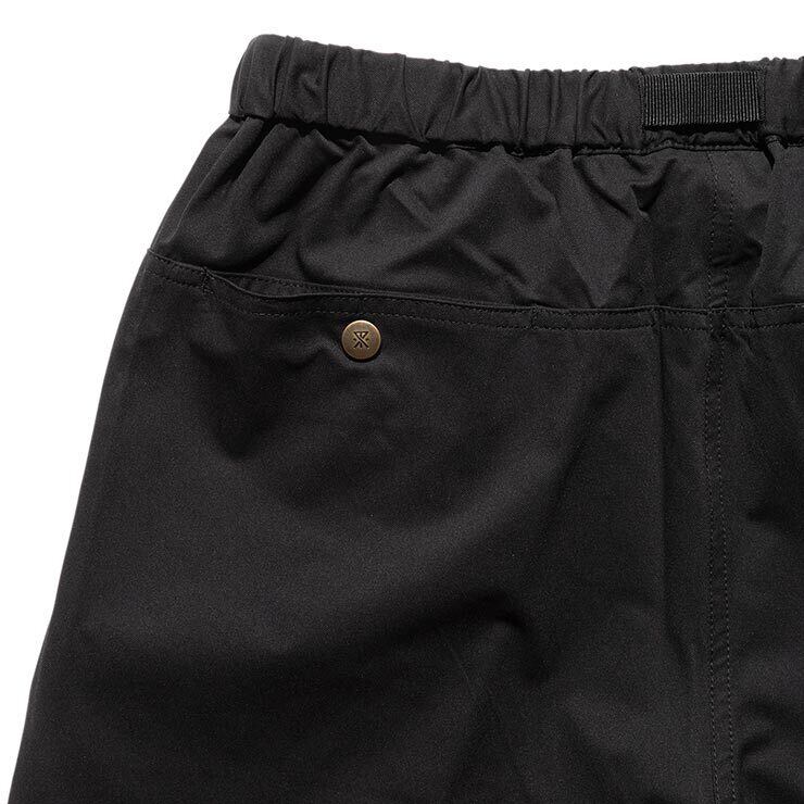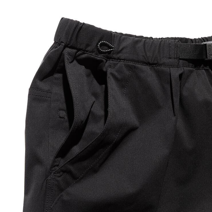 180度自然な開脚が可能なガゼットクロッチ、象徴的なバーティカルジップポケット、片手でも調整可能なベルトの仕様と高い機能性も併せ持つ。<br>