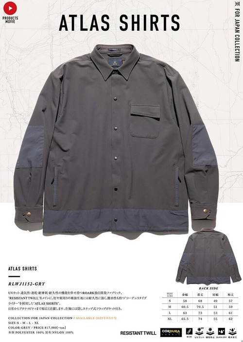 THE ROARK REVIVAL ロアークリバイバル ATLAS SHIRTS 長袖シャツ UVカット・通気性・速乾・耐摩耗・耐久性 RLWJ1152-GRY 日本代理店正規品