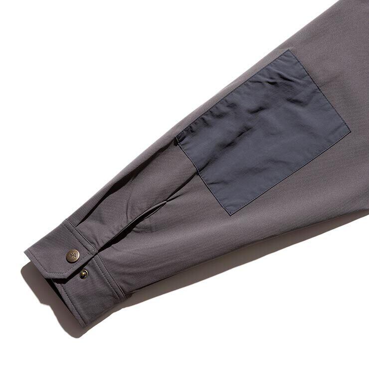 肘や裾周りの補強生地には耐久性に強く、撥水性も持つ”コーデュラタイプライター”を採用した“ATLAS SHIRTS”。<br>