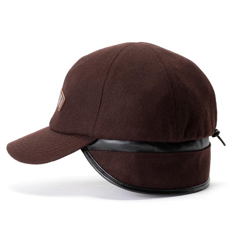 高圧縮ウール素材を使用したメルトンキャップ。<br>