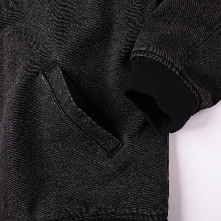 ヴィンテージウォッシュ仕上げのバーシティジャケット。<br>