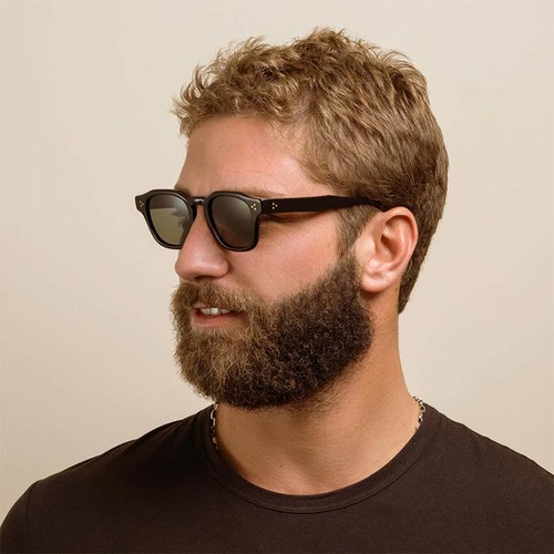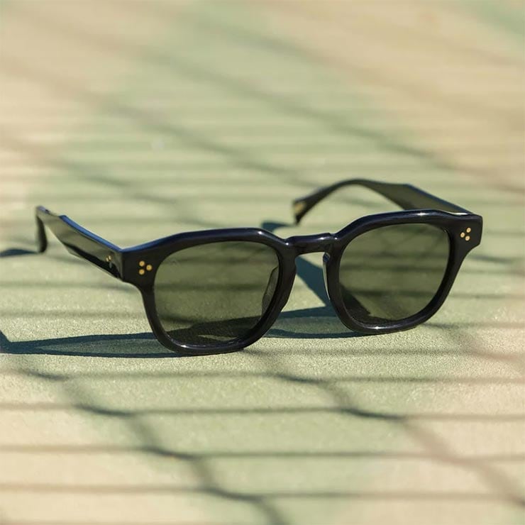 高級感のあるブラックフレームに、視認性に優れたグリーン偏光レンズを組み合わせ、<br>