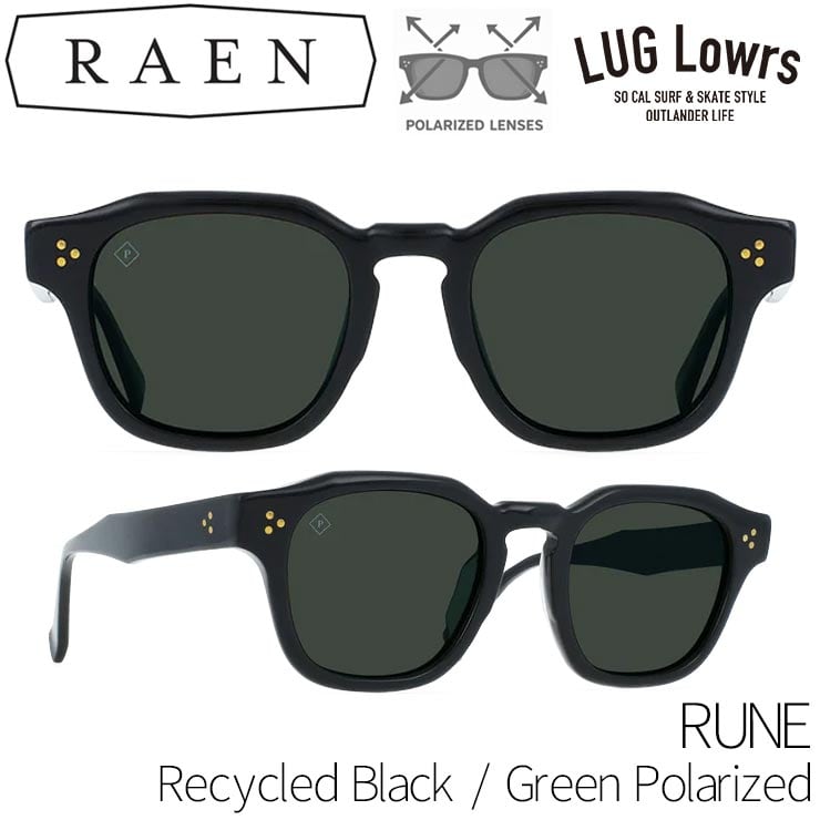 RAEN Optics レーン レイン サングラス RUNE Recycled Black Green Polarized 偏光レンズ ポラロイズド メンズ レディース 100U232RUN-S762-48 日本代理店正規品