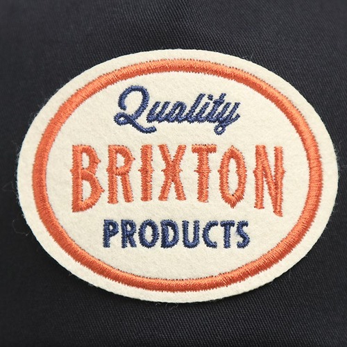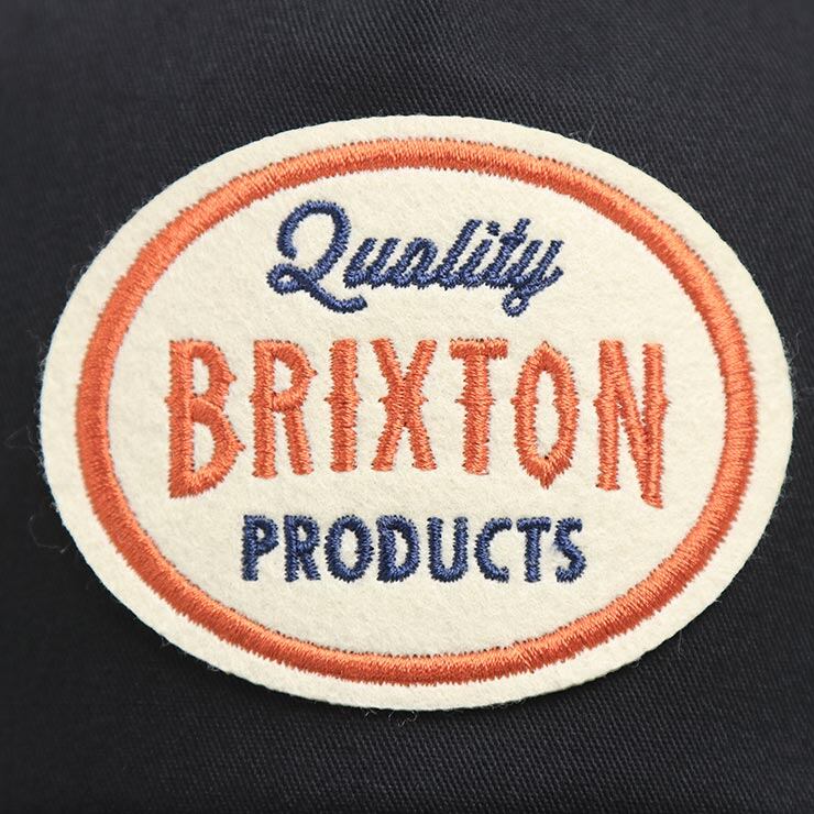 フロントには楕円型の「Quality BRIXTON PRODUCTS」ロゴワッペンを配置。<br>