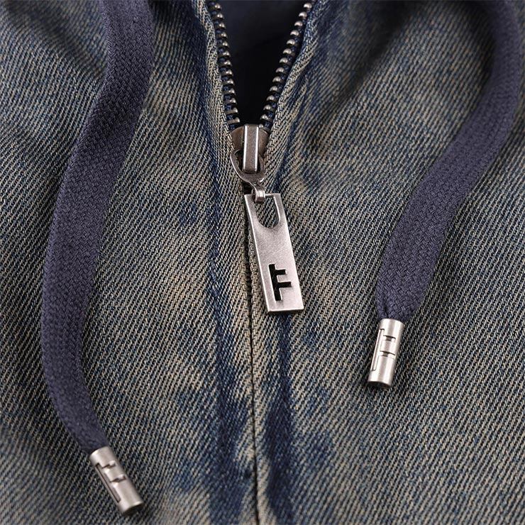 プレミアム100%コットンデニムを使用したフード付きデニムジャケット。<br><br>