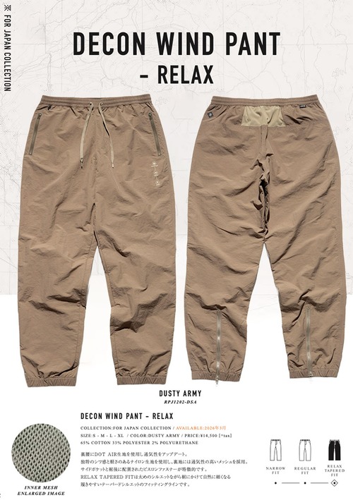 また、同シリーズのDECON WIND JACKET(RJJ1204)とセットアップでの着用も可能。<br>