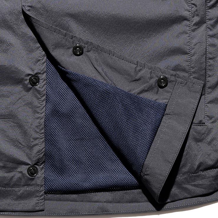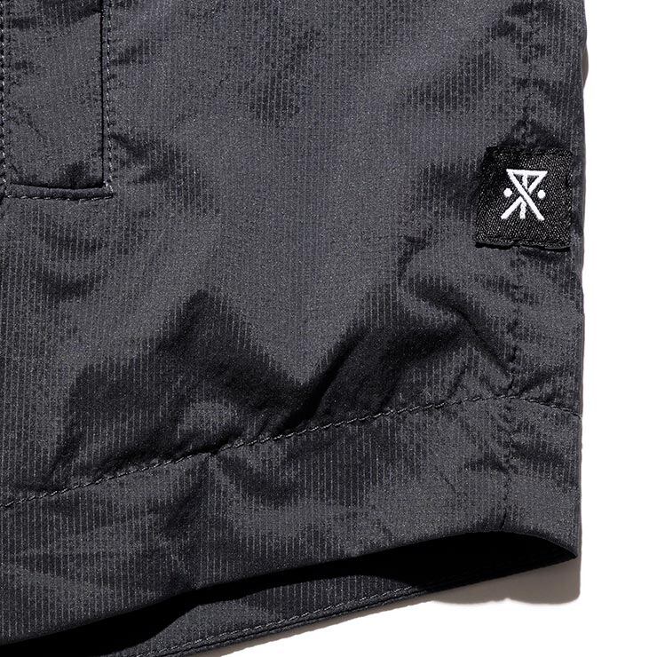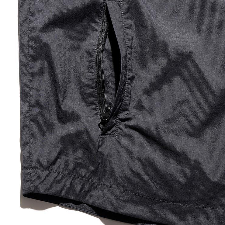 フロントのバーティカルジップポケットは、ジャケット本体を収納できるパッカブル仕様。<br>