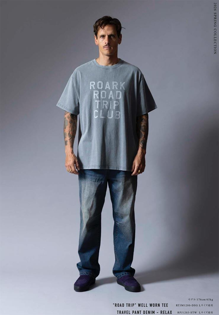 ROARK ロアーク メンズ Tシャツ 半袖 プリントTシャツ ヴィンテージ風 ROAD TRIP WELL WORN TEE RTJM1200-DSG 26SP 日本代理店正規品