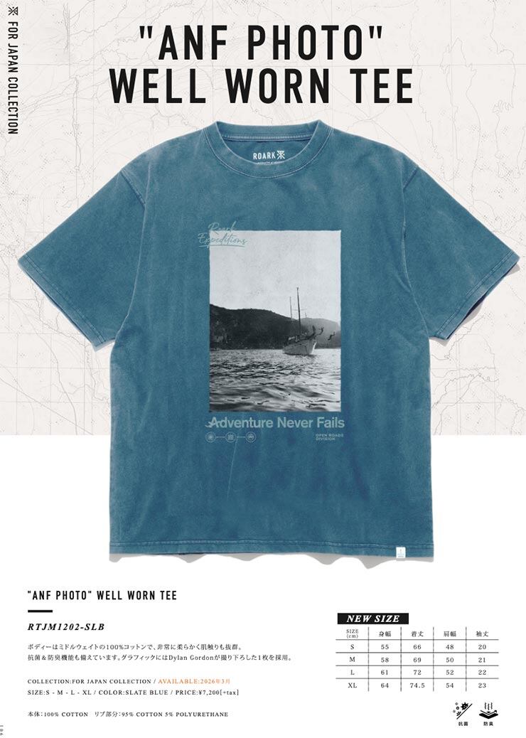 ROARK ロアーク メンズ Tシャツ 半袖 プリントTシャツ ヴィンテージ風 抗菌 防臭 ANF PHOTO WELL WORN TEE RTJM1202-SLB 26SP 日本代理店正規品