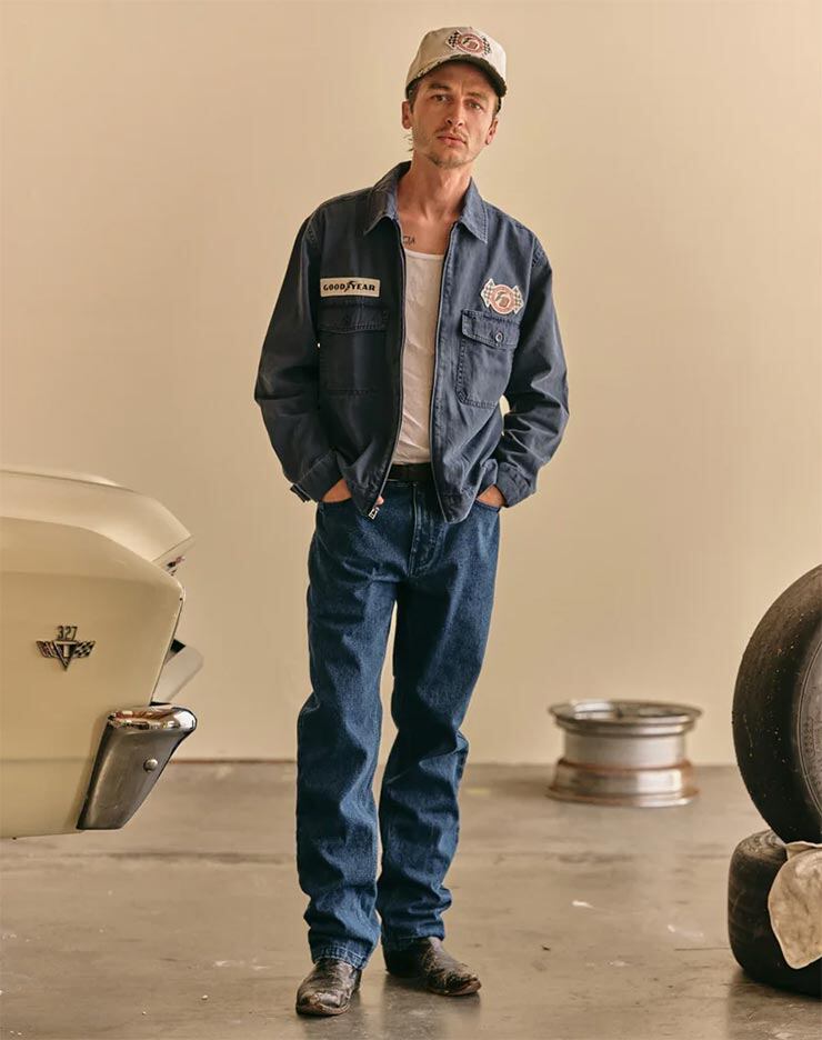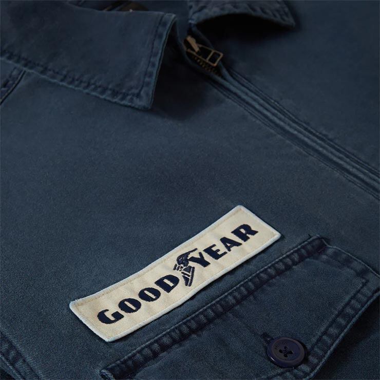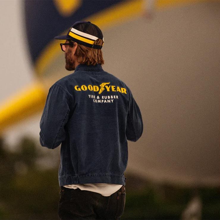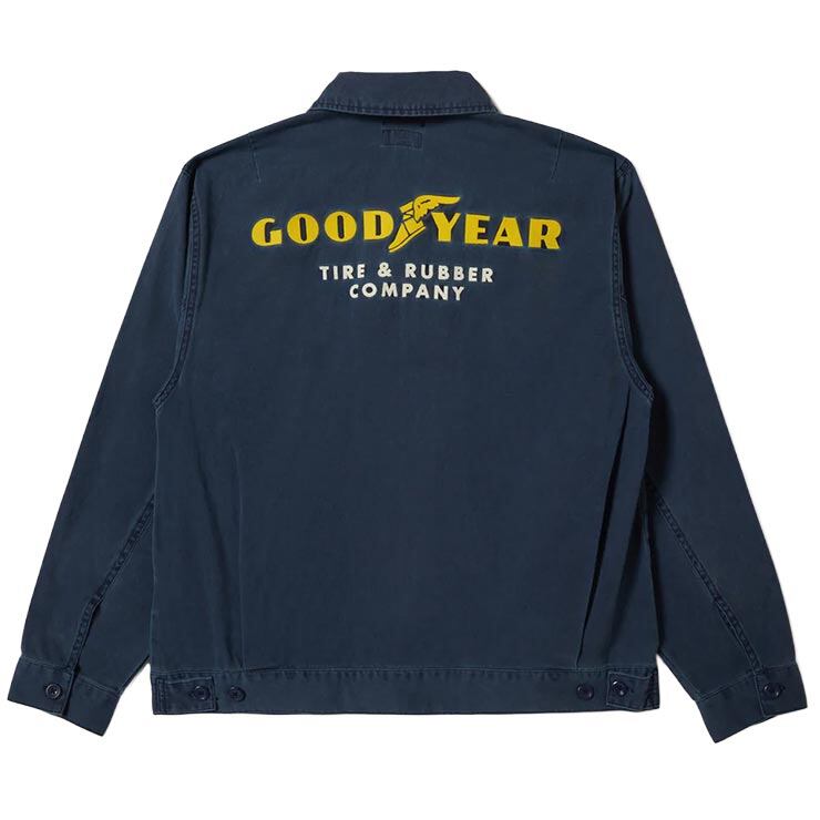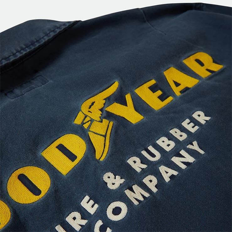 胸元や背面に施されたチェーンステッチ刺繍や、GOODYEARとのカスタムパッチがヴィンテージライクな存在感を演出します。<br><br>