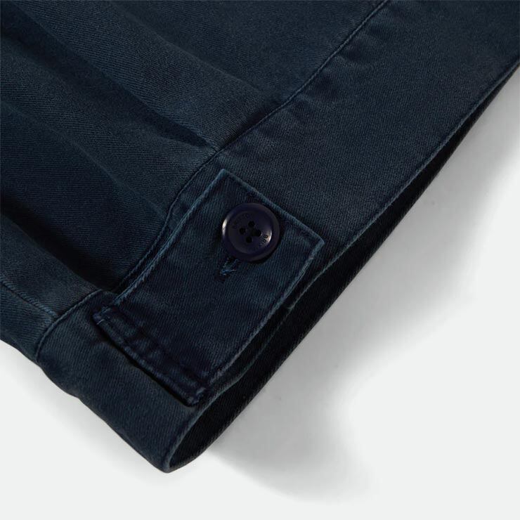 生地には215gsmのコットンブラッシュドツイルを採用し、しっかりとした厚みと耐久性を確保。<br>