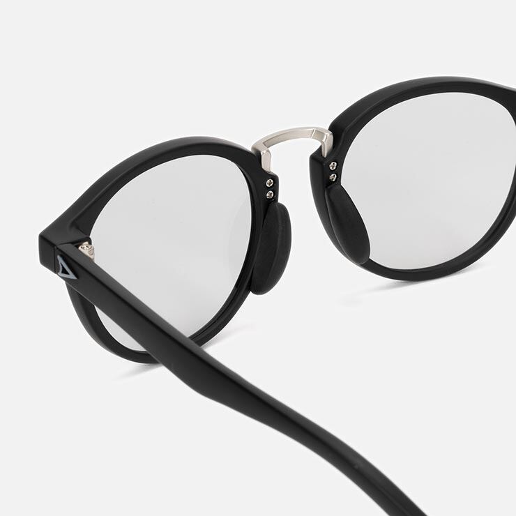 新開発の細身ナローテンプルを採用し、フレーム全体をスリムに仕上げることで、見た目・着用感ともに軽快さを実現しています。<br>