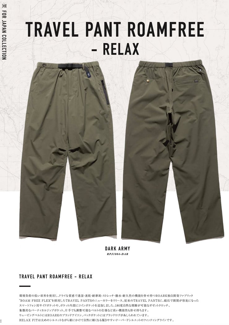 ROARK(ロアーク)より登場した「TRAVEL PANT ROAMFREE - RELAX」は、機能性と快適性を兼ね備えたトラベルパンツ。<br><br>