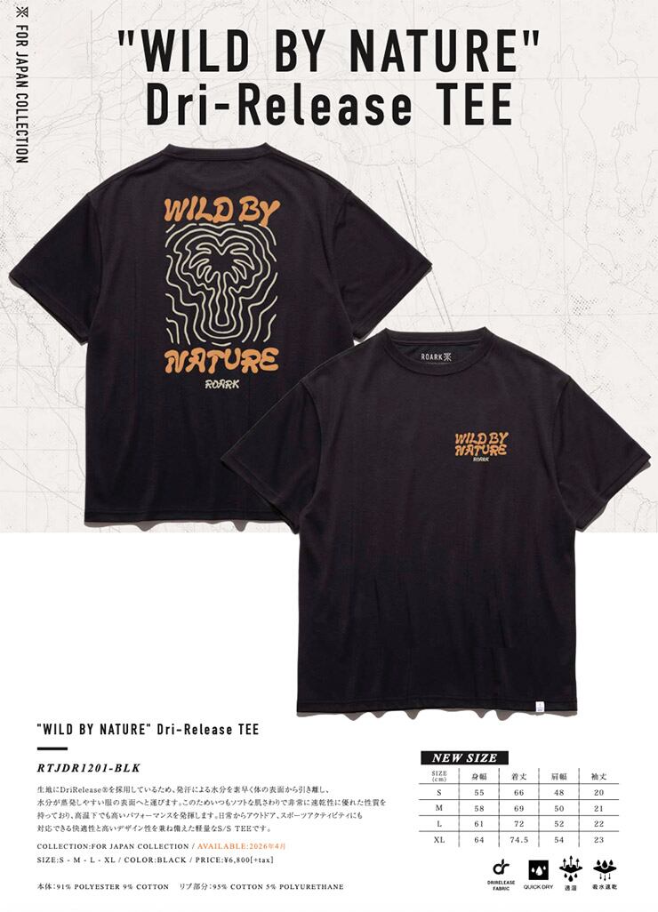 ROARK ロアーク Tシャツ メンズ 半袖Tシャツ 速乾Tシャツ 吸水速乾 ドライTシャツ 軽量 WILD BY NATURE DriRelease TEE RTJDR1201-BLK 26SP 日本代理店正規品