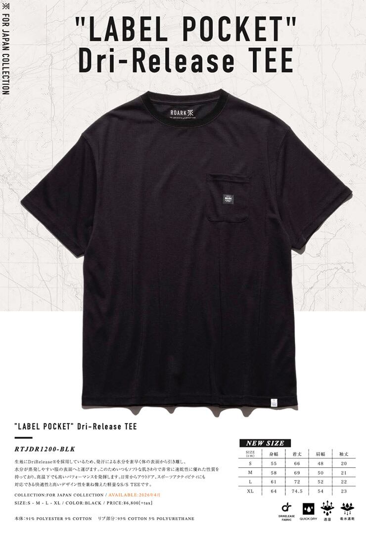 ROARK ロアーク Tシャツ メンズ 半袖Tシャツ ポケットTシャツ 速乾Tシャツ 吸水速乾 ドライTシャツ 軽量 LABEL POCKET DriRelease TEE RTJDR1200-BLK 26SP 日本代理店正規品