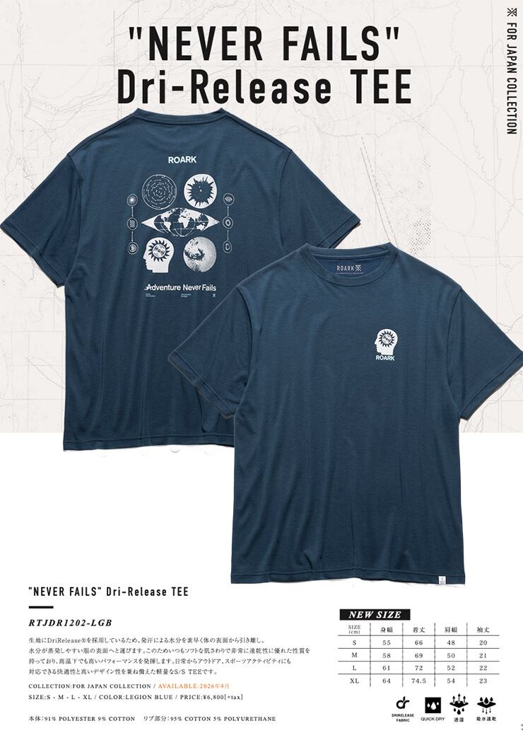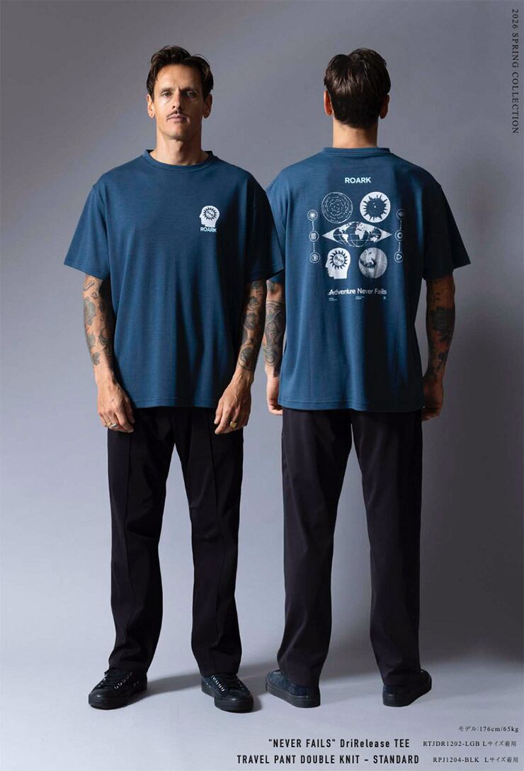 ROARK ロアーク Tシャツ メンズ 半袖Tシャツ 速乾Tシャツ 吸水速乾 ドライTシャツ 軽量 NEVER FAILS DriRelease TEE RTJDR1202-LGB 26SP 日本代理店正規品