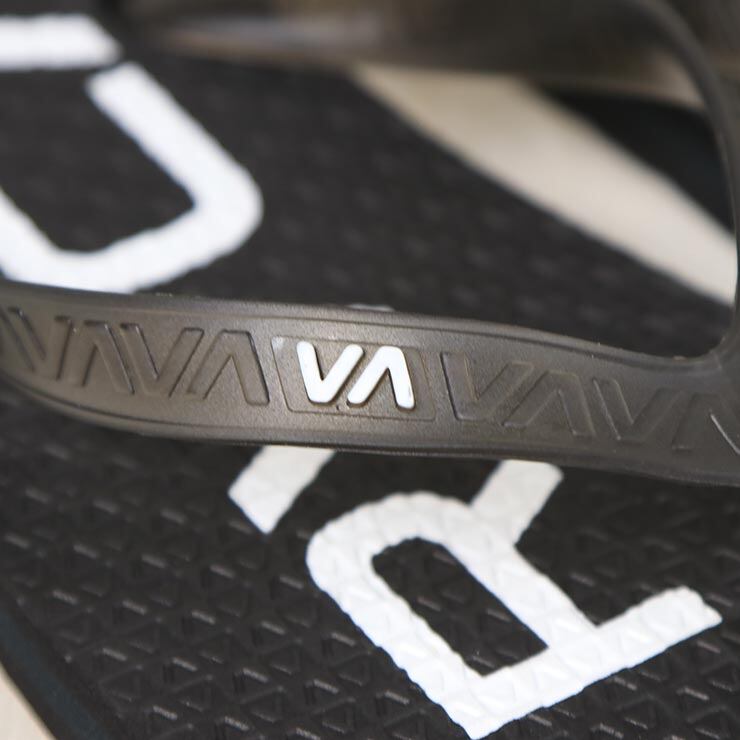 鼻緒部分とインソールにRVCAロゴをあしらい、シンプルながらブランドらしいデザインに仕上げています。<br>