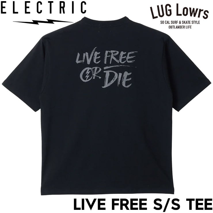 ELECTRIC エレクトリック Tシャツ メンズ 半袖Tシャツ プリントTシャツ コットンTシャツ バックプリント LIVE FREE S/S TEE E26ST11 BLK 日本代理店正規品