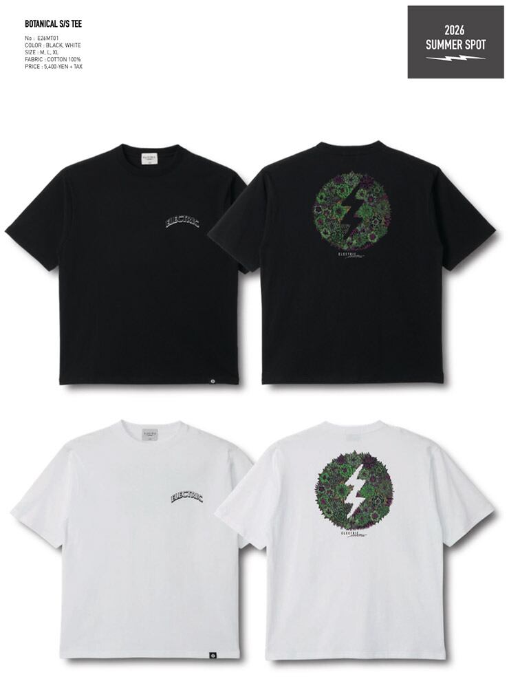 ELECTRIC エレクトリック Tシャツ メンズ 半袖Tシャツ コラボTシャツ HIROTTON ヒロットン コットン プリントTシャツ BOTANICAL S/S TEE E26MT01 WHT 26SP 日本代理店正規品