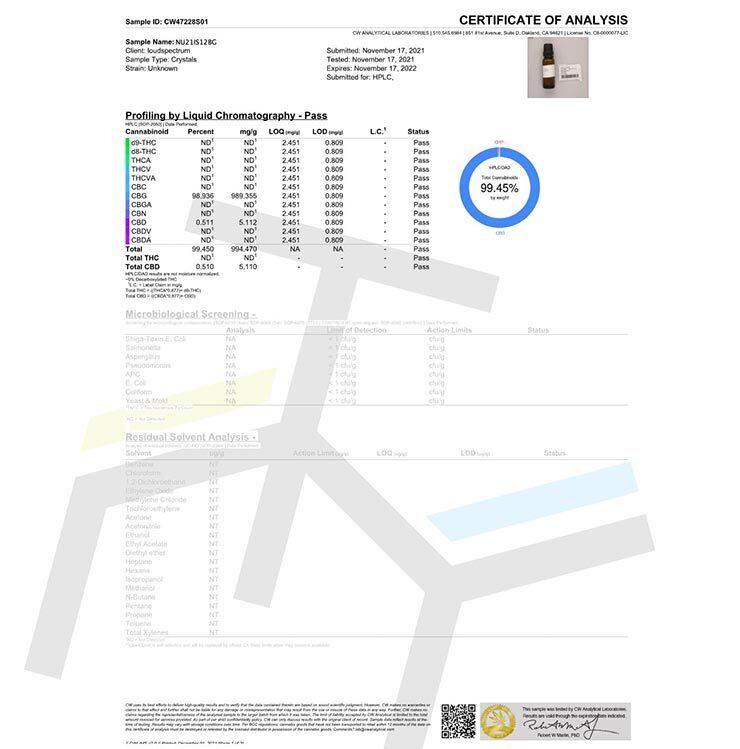 CBD 47% + CBG 25% + CBC 6% + CBDV + テルペン 5%<br>