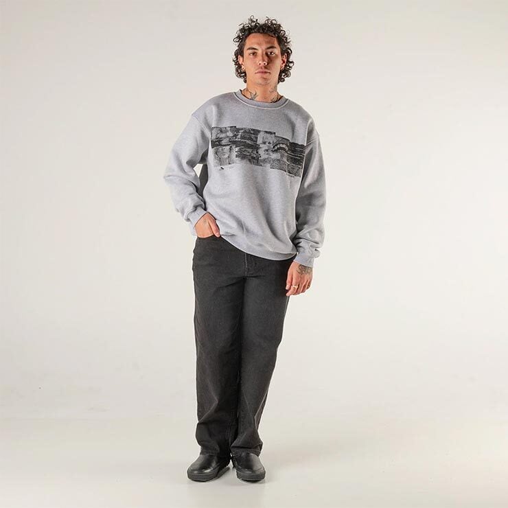素材:50% COTTON / 50% POLY 320GSM BRUSHED FLEECE // FRONT SCREEN PRINT // VINTAGE CREW FIT.