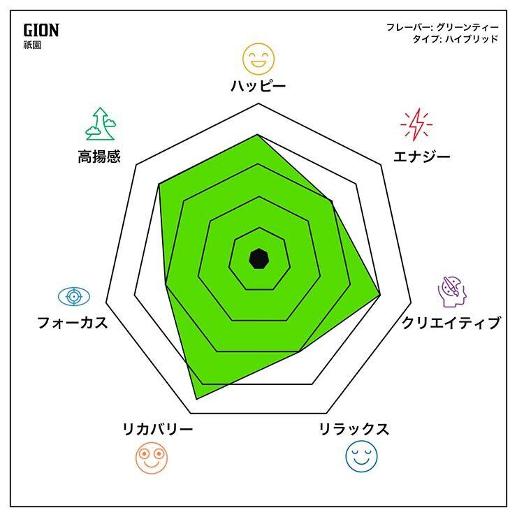 GIONはCBD、CBG、CBCがバランス良く配合されたハイブリッドなカートリッジです。日中いつで も使用可能です。<br>