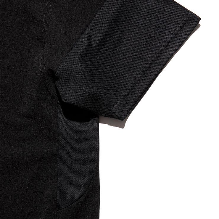 接触冷感で吸汗速乾に優れ、抗菌防臭も備えた凸凹感のある生地を組み合わせることで、汗をかいても肌離れが良く、さらりとした着心地を実現させました。