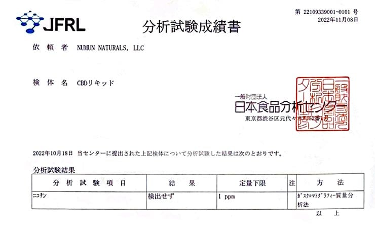 米国産高品質ヘンプ使用、100%オーガニック、厚労省認可取得、THCフリー、PG/VGフリー<br>
