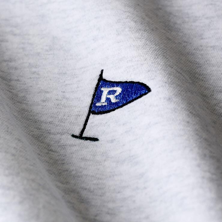 左胸にゴルフのピンのグラフィックをモチーフにしたワンポイントの刺繍。