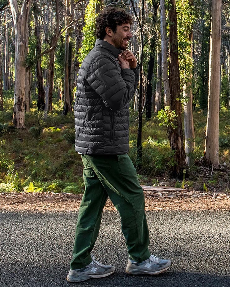 この軽量のモックネック ジャケットは、部分的にリサイクル ポリエステルの中綿を使用しており、