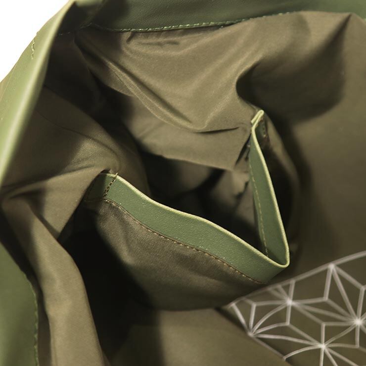 内側に財布ポケット、便利なキーリング、そしてマイボトルが入るボトルホルダー。外側に安全でワイドなジッパーポケット。