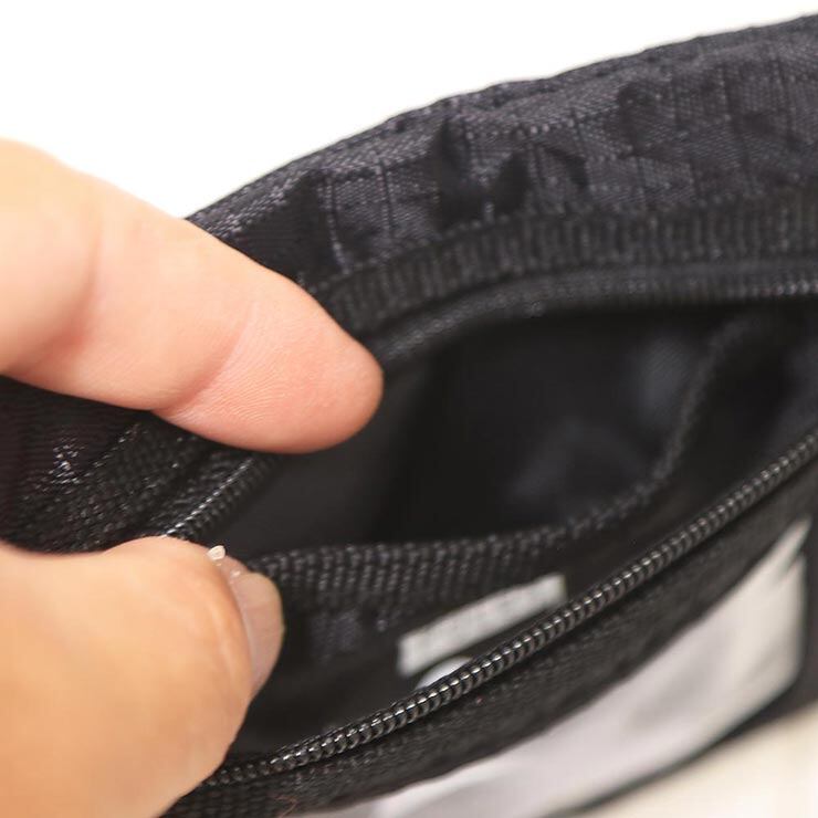 耐久性のあるリップストップ生地を採用しつつ、クリアの小窓で中の小銭やカード、